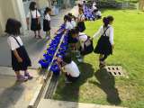 今朝、中庭に行ってみると1年生と2年生がそれぞれ、朝顔とトマトに水をあげていま...
