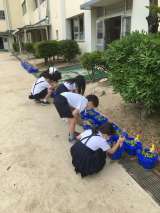 あしたは がっこうで あさがおの まびきを します。 うえの しゃしんを みてく...