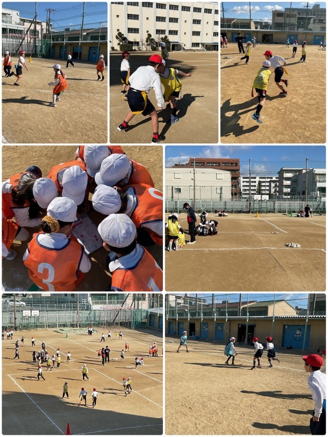 1,2組は体育。ボール運びおにごっこの熱い戦い(=試合)が繰り広げられていました...