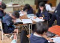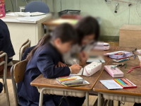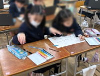 本日2年生の教室で生活の学び合いを見ることができました。卒業、入学に向けた玄関掲示を飾る桜の花を切り抜いていました。ここでもやはりお隣としっかり聞き合いながら取り組むことができていました。