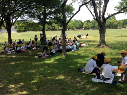 芝生広場へ移動して、木陰でおいしいお弁当タイムです。