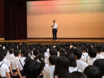 校長先生からは、1学期の全員のがんばりをみんなで拍手してたたえ合ったあと、夏休みの過ごし方について、「規則正しい生活を送る」「目標を立てて頑張る」というお話がありました。