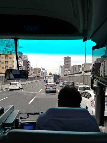 渋滞していましたが、渋滞から抜けました。まだ、土佐堀ですが、子ども達はノリノリハイテンションです。