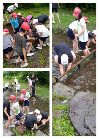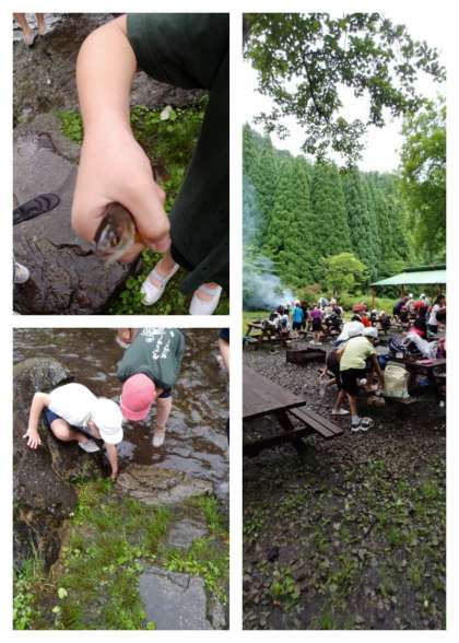 『つめたーい』と叫びながらも夢中で魚と格闘中。