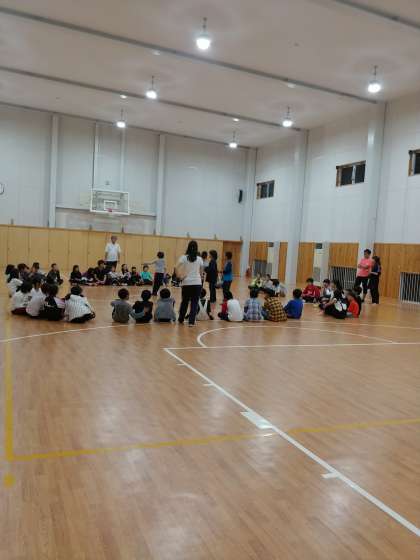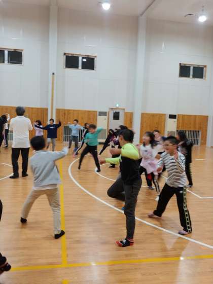 と思ったら強風で火の粉が舞い上がり、危険だったため、急きょ体育館に移動し、キャンプファイヤーの続きをしました。