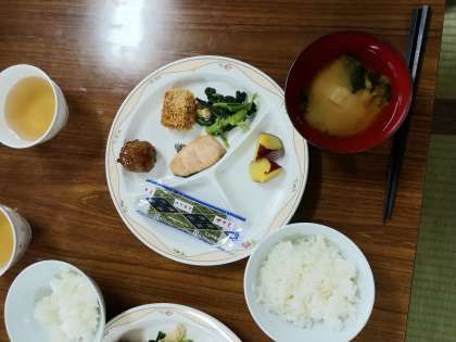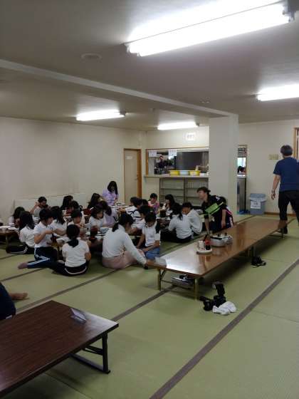 朝ごはんを食べています。朝から『おかわり!おかわり!』ほぼ全員完食です。