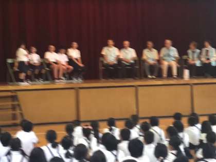 校長先生のお話、児童のはじめの言葉の後、各学年の代表児童が舞台の上で手紙の発表を行いました。手紙を読み上げるのではなく、老人会の方々の方を見ながら、しっかりと自分の言葉で発表していました。その後、全校児童の手紙を老人会の皆様に贈りました。老人会代表の但馬さんからは、毎年児童から送られる手紙に温かい気持ちになり、パワーをもらえるというお話をしていただきました。