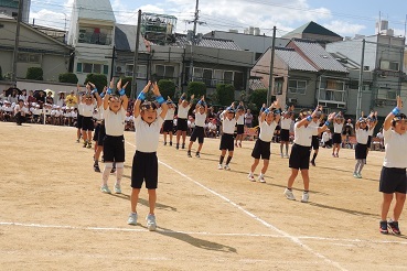 写真は2年生の学年演技の「ハッピーダンシング」です。長い手足を活かして、リズムをしっかりとらえていました。