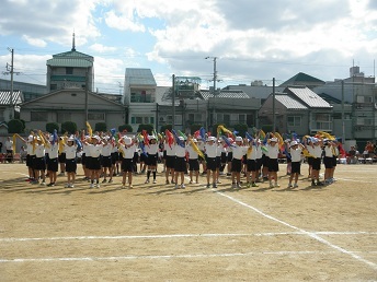 写真の1枚目は4年生のリレーです。2枚目と3枚目は3年生の学年演技です。バンダナを使って、場面を変えて力強さやしなやかさを表現しました。表現する力がついてきましたよ。