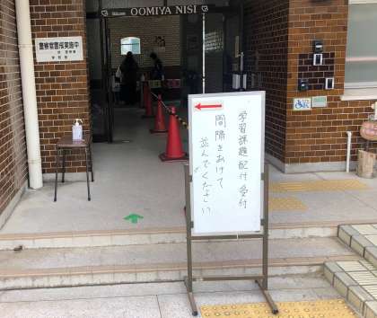 そして、早く学校で勉強したいと願っている子ども達への素敵な(?)プレゼント、「家庭学習課題」の配布を、本日と明日行います。配布場所は、学校正門よりお入りいただいたところになります。現在、受付が混雑している様子はありませんが、万一お並びいただくようなときは、十分に間隔をあけて並んでいただきますよう、よろしくお願いいたします。