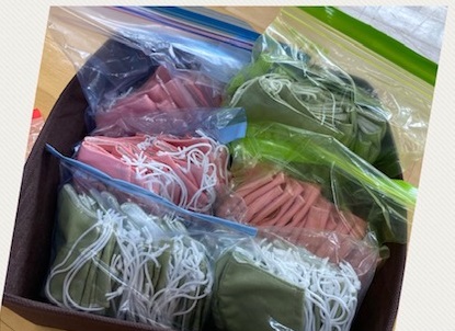 また、「今後の保健室での対応に役立ててください」と、ご家庭でのお仕事を生かした手作りのフェイスガードをお届けいただいた保護者がおられます。さらに、「何かの役に立てば」と、たくさんの手作りマスクを預けてくださった保護者もおられます。たくさんの温かい思いに支えられていると感じます。本当にありがとうございます。