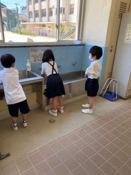 手洗いの後に、きれいなハンカチで拭く大切さの話もしました。ハンカチ、ティシュペーパーを毎日、ポケットに入れて持たせてください。