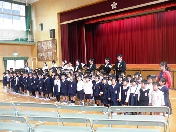 1枚目の写真が1年生がコラボをしているところ、2枚目が4年生がコラボをしているところです。