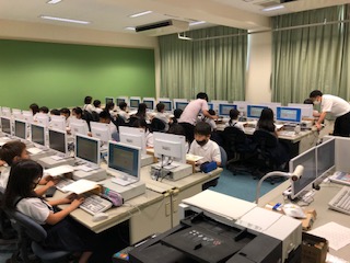 パソコン室のすべてのパソコンに自作ソフトを設定し、スタンドも設置するなど、前日から準備をしてくださいました。ありがとうございます。大宮中学校パソコン部の生徒さんも準備を手伝ってくれました。本校卒業生もありがとう!