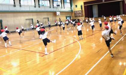 学年ごとの1回目の練習が24日は1年と6年で、25日は2年生で行われました。1年生は、まず、全員が腰を降ろしてしっかり聞く姿勢を整えてから、一つ一つの振り付けを教えてもらっていました。6年生はフラッグを使ったダイナミックな舞いがあるようです。2年生は別のクラスの演技をお互いに見て、「いいところみつけ」で自分の動きに取り入れるようにしていました。23日に1回目の練習を行った学年では、2回目の練習に進んだ学年もあります。各ご家庭で子どもたちの頑張りを聞いていただければと思います。