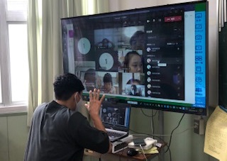 接続が成功したご家庭で先生がモニターに映った途端、学校のほうにも子どもたちのうれしそうな顔が映し出されました。早い日程でテストを行っていた複数の学校からの情報で、利用人数が増えると接続しにくかったりフリーズしてしまったりもするとのことで、全校同時だった予定を学年別に時間差をつける方法に切り替えて実施しました。そのため、せっかくつながっても、確認だけですぐに退出をお願いしました。早くみんなが同時に接続できる通信環境になるといいですね。