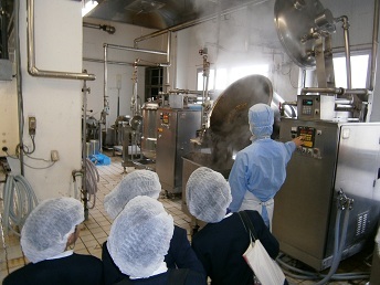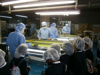 写真は材料の「青さのり」をチェックしているところ、煮あげたところ、機械でビン詰めしたのを点検しているところです。