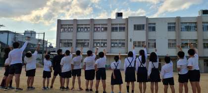 運動会の準備で運動会のスローガン『全力で心に残る最高の運動会にしよう』をはりました。