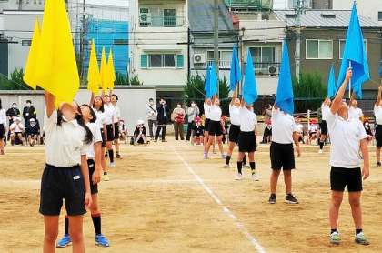そんな中、子どもたちは全力で走競技と団体演技を披露してくれました。普段マスクに隠れてしまっていたとびきりの笑顔と真剣な表情で元気に活動する姿は、教職員はもちろんのこと、誰しも感動を覚えるものでした。連日、時間制限もある中で、練習と準備に取り組んできた成果です。例年より少ない種目であっても、そこに集中する力は素晴らしいものがありました。子どもたちにとっては、いい意味でも永く忘れることができない運動会、『全力で、心に残る最高の運動会に』できたことと思います。