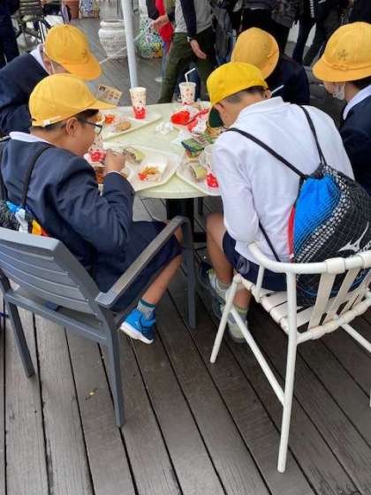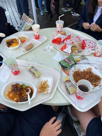 ランチタイム。お腹がいっぱいになったら、また遊びます!パレードも始まりました。