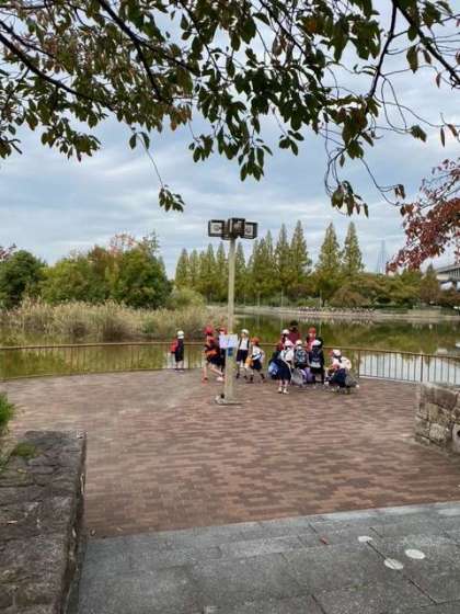 紅葉が始まった城北公園でのウォークラリーを終え、学校に帰ってきました。