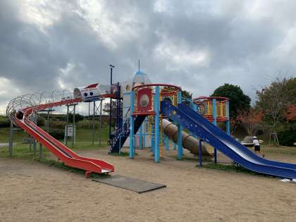 深北緑地に到着し、最初にロケット広場で遊びました。