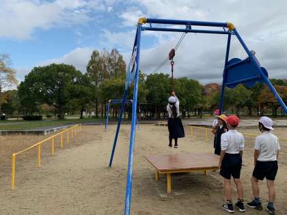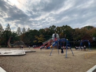 隣の芝生広場でも鬼ごっこなどをして楽しんでます。