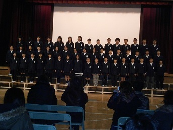 6年生の学習発表会では○保護者の皆さんへの「呼びかけ」○「ふるさと」合唱○一人ひとりの「抱負」○「風を切って」「花は咲く」演奏○「呼びかけ」○「変わらないもの」合唱を行いました。この6年間本当によくがんばりました。すばらしい皆さん、大きく羽ばたいてくれると信じています。