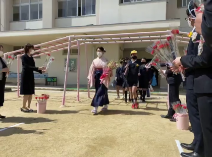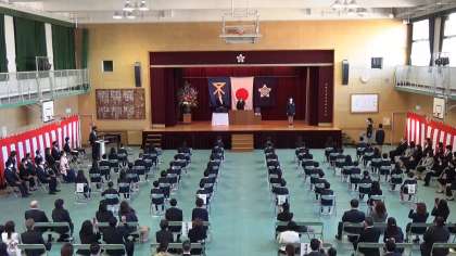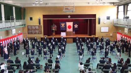 春の日差しが暖かい好天のもと、第77回卒業式が行われました。卒業生54名が、堂々とした立派な態度で誓いの言葉を述べ、卒業証書を手にしました。大きく成長したその姿に教職員も保護者の皆さんも、とても胸が熱くなりました。たくさんの思い出を胸に、卒業生が大宮西小学校を巣立って行きました。