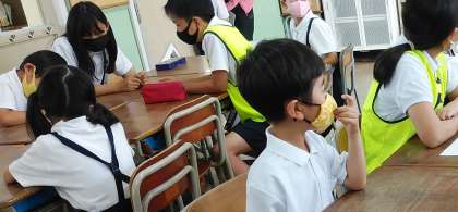 スマイルキッズ(たてわり班)はじめまして集会が8:30〜8:45までありました。今年の班のメンバーが、初めて顔を合わせました。それぞれ担当の先生の教室に集まり、はじめに先生の紹介、そしてメンバーの紹介をしました。1班8〜9人の班で、これから約1年間、リーダーを中心に児童集会や全校オリエンテーリングなど、さまざまな活動を通して、異学年の交流を深めていきます。6年生はこの日を待ちわびていたようで、早速班での自己紹介の時には進行役となって、みんなをしっかりまとめようとがんばっていました。