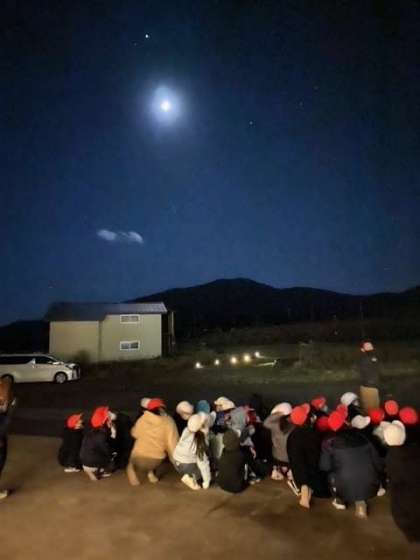お風呂の予定を変更して、先にナイトハイクに出かけます。星がきれいにみえます。写真でお伝えできないのが残念です。流れ星が見えたらいいなぁ。