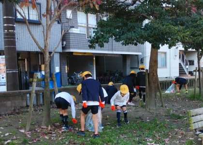 1時間目に、3年生がクリーンUP作戦として、江野公園の掃除(ごみ拾い)を行いました。大阪マラソンの直前に大阪市全市で取り組む清掃活動で、毎年3年生が清掃活動を行っています。本年度は大阪マラソンは2月に行われるとのことですが、毎年行っている11月に行いました。