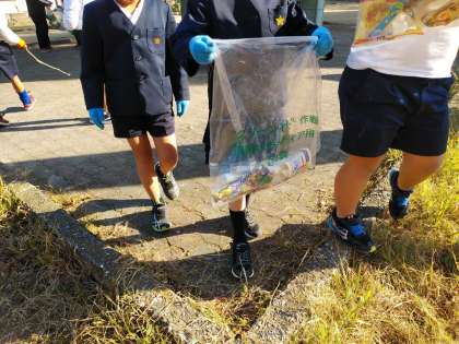 公園に着くと、お菓子の袋や空き缶、たばこの吸い殻がたくさん落ちていて、子どもたちは「早く拾いたい!」と意気込んでいました。開始の合図でみんな一斉に広がって、目に見える所から草の陰に隠れているところまで、あっという間にたくさんのごみを拾いました。拾い終わって感想を聞くと、「こんなにごみが落ちているなんて驚いた。」「ごみは捨ててはいけないと思った。」「これから、ごみを持って帰って捨てようと思った。」などの意見が出ました。きれいになった公園を見て気持ちがいいと言っていました。いつもきれいな気持ちの良い公園であってほしいですね。