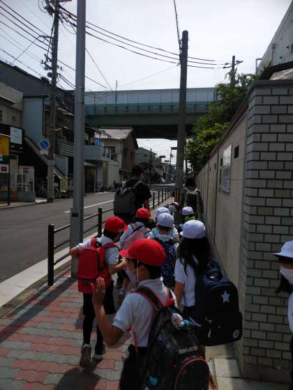 今日は2年生の遠足です。昨日の雨とうって変わっていいお天気になりました。2年生は電車に乗って校外学習に行くのは初めてです。ドキドキ・ワクワクしながら、元気よく天王寺動物園へと出発しました。