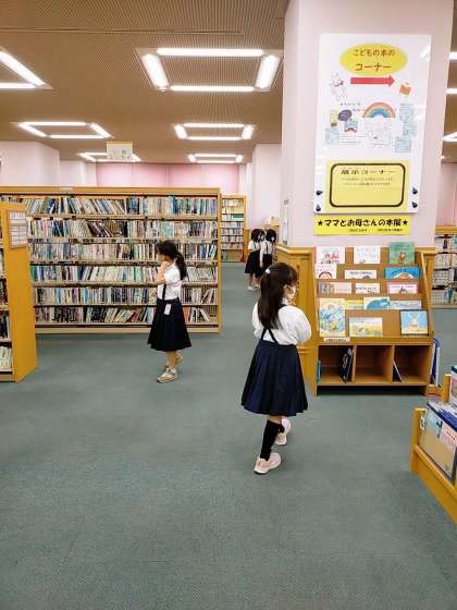 旭図書館では、図書館にある本を見たり、本棚にある本の並び方の工夫を探したりしました。