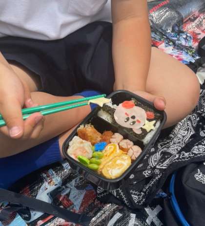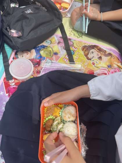 見学の後はお楽しみのお弁当タイムです。みんなおいしそうなお弁当を広げて大喜びです。保護者の皆様、朝早くからお弁当を作ってくださってありがとうございました。