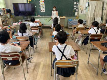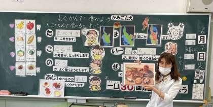 ワークシートやわかりやすい教材を使い授業をしていただきました。よく噛んで食べる事が食べ過ぎをふせいだり、あごを丈夫にしたりすることがわかりました。