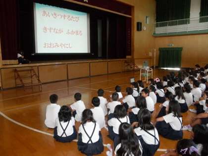 今週から挨拶週間になります。児童朝会で挨拶は何のためにするのかについてお話をしました。−挨拶は「あなたのことを認めていますよ、大切に思っていますよ。」という心を伝えるために行います。相手に対して「受け入れる・心を開く」ためにするのです。自分からしないのは「相手を無視している。大切に思っていない。」ことになるのです。しっかりした挨拶ができることは相手を大切にすることになるので、自分も大切にされます。ぜひ挨拶は「自分から、相手の目を見て、大きな声で、笑顔で」行いましょう。心を開くことですから、心の窓といわれる目をしっかり見てください。挨拶が大切だと思うその心を大切にしてください。−挨拶によってより豊かな人生を歩んで欲しい考えています。(参考、引用:あなたの人生が変わる奇跡の授業、比田井和孝・比田井美恵著三笠書房刊)