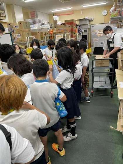 3年生が社会科 [店で働く人々の仕事]でアプロ旭店に見学に行かせて頂きました。最初にバックヤードでの仕事を見せて頂き、その後売り場も回らせて頂き丁寧に説明して頂きました。