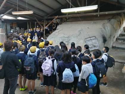 帰路につきました。メールとホームページで到着時刻をお知らせします。写真は、登り窯の見学の様子です。