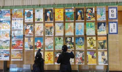 12月13日(火)〜12月16日(金)期末個人懇談会と並行して作品展を行い、保護者の方々に鑑賞していただきました。1・2・4・6年は絵画、3・5年は工作を展示しました。