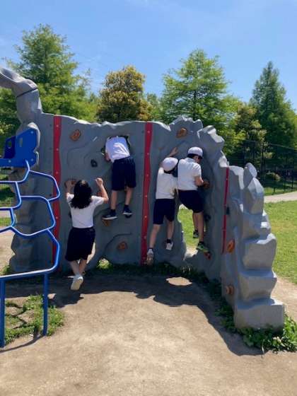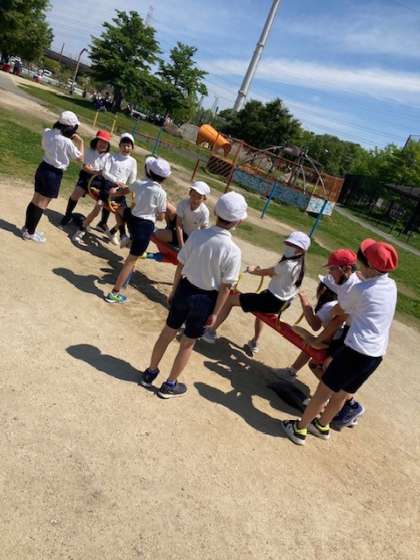 今日は、4年生が深北緑地へ遠足に行きました。ロケット広場では、いろいろな遊具で、楽しく遊びました、シーソーが大人気でした。