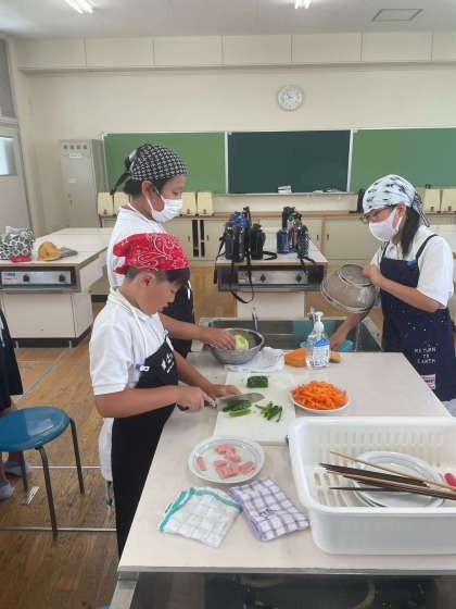 家庭科の学習で「野菜炒め」と「ポテトフライ」の調理実習をしました。