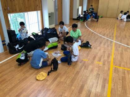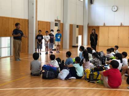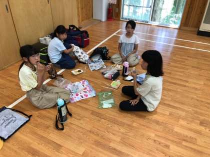 5年生は、ハチ高原に到着しました。サンダイフクさんとあいさつをした後、保護者の方々に持たせていただきましたお弁当を生活班ごとにいただきました。