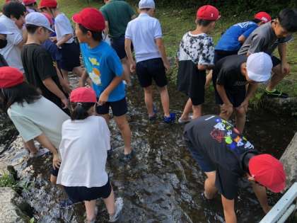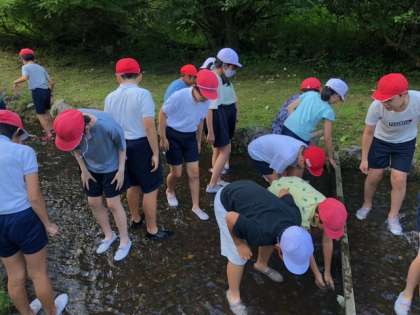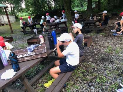 川の水がとても冷たくて驚きの悲鳴がしばし、続いていました。それもつかのま、あまごつかみの名人が次々と現れ、みんなで美味しくいただきました。