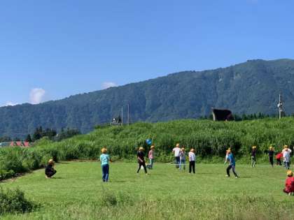 子どもたちは、各部屋の整理整頓を終えたグループから宿舎前の広場で遊んでいます。