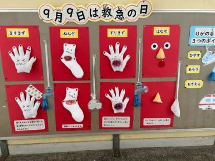 〇切傷 傷口を水で洗う。血が止まらないときは