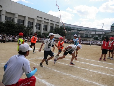 写真の続きです。1.5年生団体競技(騎馬戦)2.2年生団体演技3.6年生のリレーです。