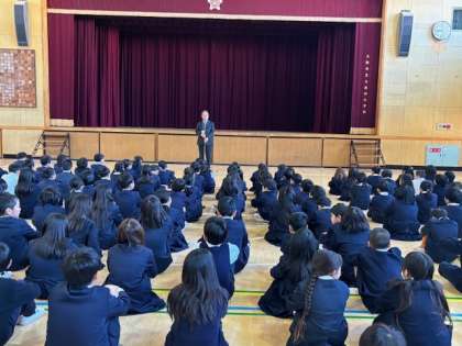 さて、今日から3学期。6年生はいよいよ小学校最後の学期を迎え、1〜5年生は学年のまとめの時期で、皆さん新しい学年に向けて期待も高まっていきます。今お話したように、何かができる大人に、また一歩近づくことになります。2学期に見つけた自分のすごいところを忘れず、3学期に頑張ろうと考えたことを生かして、どんどんすごいところを増やしたり高めたりしてください。