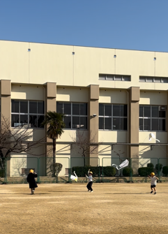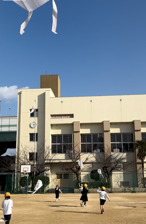 今日は、いいお天気の中でたこあげをしました。「やったことある!」という子と「やったことない!」という子が半分半分くらいだったので、上げかたの説明をして、始めました。いい風が吹いていたので、「わぁ、あがった、あがった!」と大喜びでした。